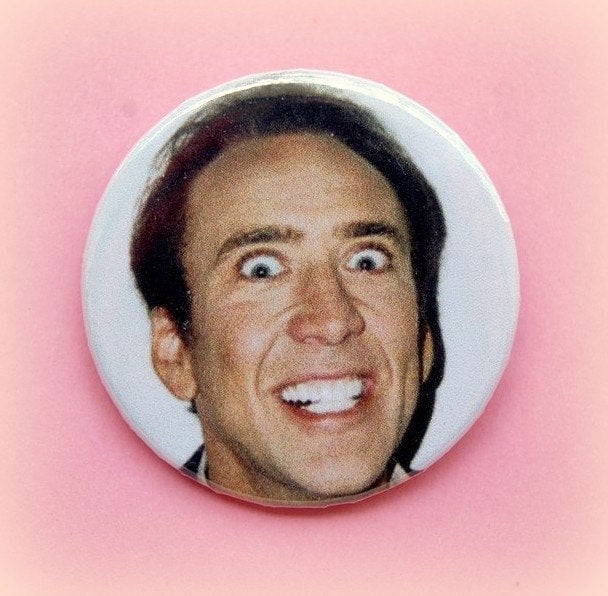 Nicolas Cage creepy smile - pinback button, magnet or clip 1.5 Inch (38mm)