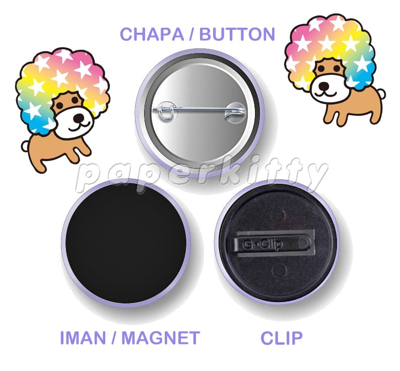 Brand-new glossy pinback button that is 3.8cm (1.5 inches) in diameter. Made with high-quality materials. Backing is a metal shell with pinback and in the front mylar cover to protect the button from scratches.