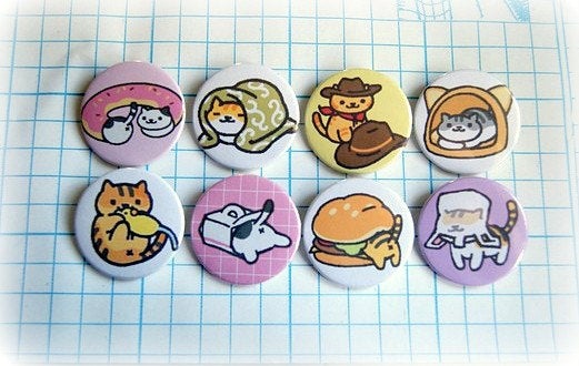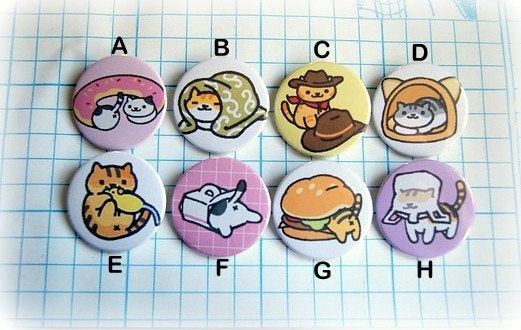 Neko Atsume cats set B - pinback button, magnet or clip 1.5 Inch (38mm)