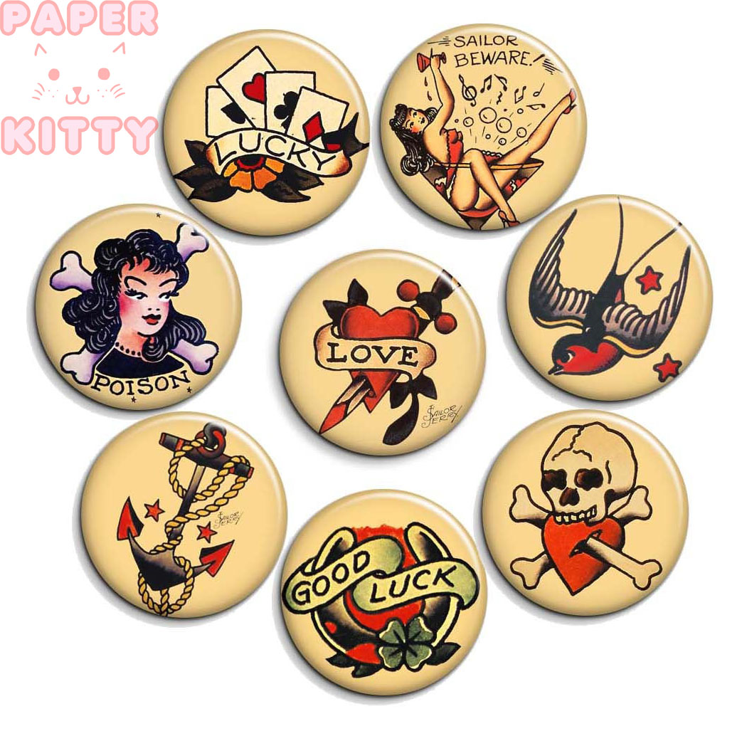 Classic Sailor Jerry tattoo art - pinback button, magnet or clip 1.5 Inch (38mm)
