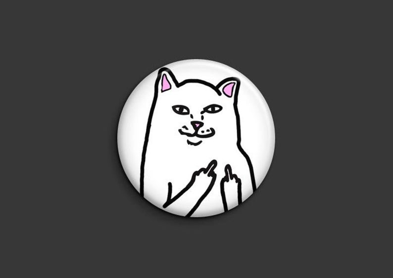 Middle finger cat - pinback button, magnet or clip 1.5 Inch (38mm)