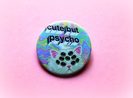 Cute but psycho - pinback button, magnet or clip 1.5 Inch (38mm)
