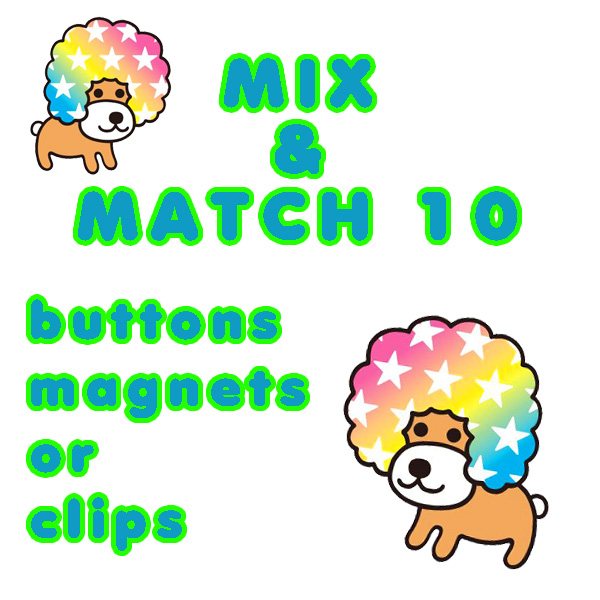 You save on shipping too! choose any 10 pinback button/clip/magnet from my shop. Let me know in the "notes to seller" at checkout which designs you would like.