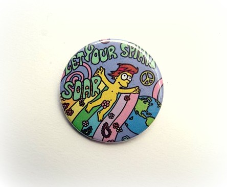 Let your spirit soar Hippie Homer - pinback button, magnet or clip 1.5 Inch (38mm)