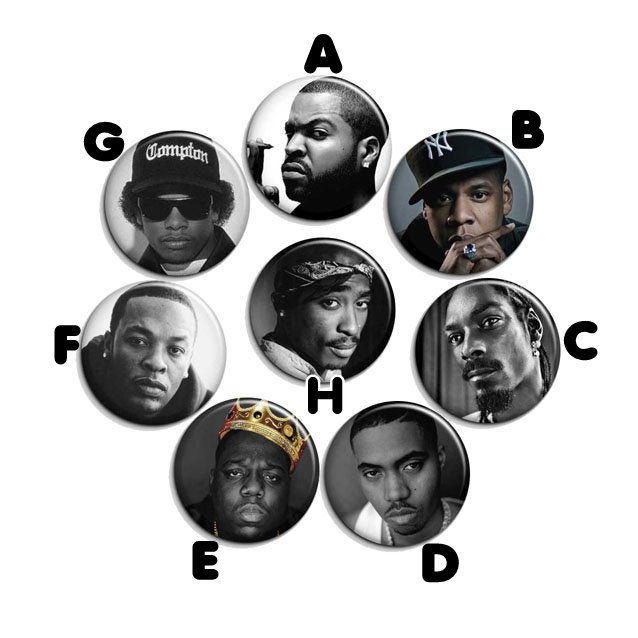 Tupac, Ice Cube, Big, Dr Dree, Eazy-E, Nas, Snoop Doog, Jay-Z.