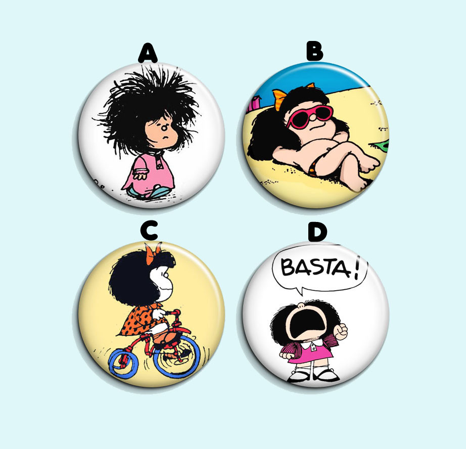 Mafalda - pinback button, magnet or clip 1.5 Inch (38mm)