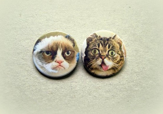 Grumpy cat & Lil Bub - pinback button, magnet or clip 1.5 Inch (38mm)