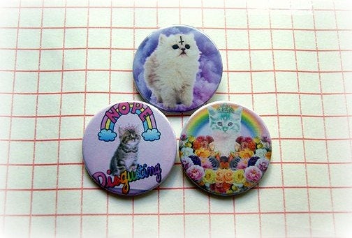 Pastel goth cats - pinback button, magnet or clip 1.5 Inch (38mm)